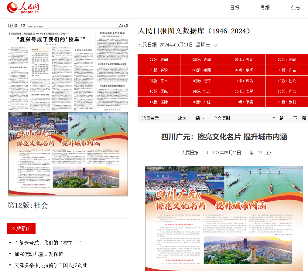 9月11日【人民日报】四川广元:擦亮文化名片 提升城市内涵
