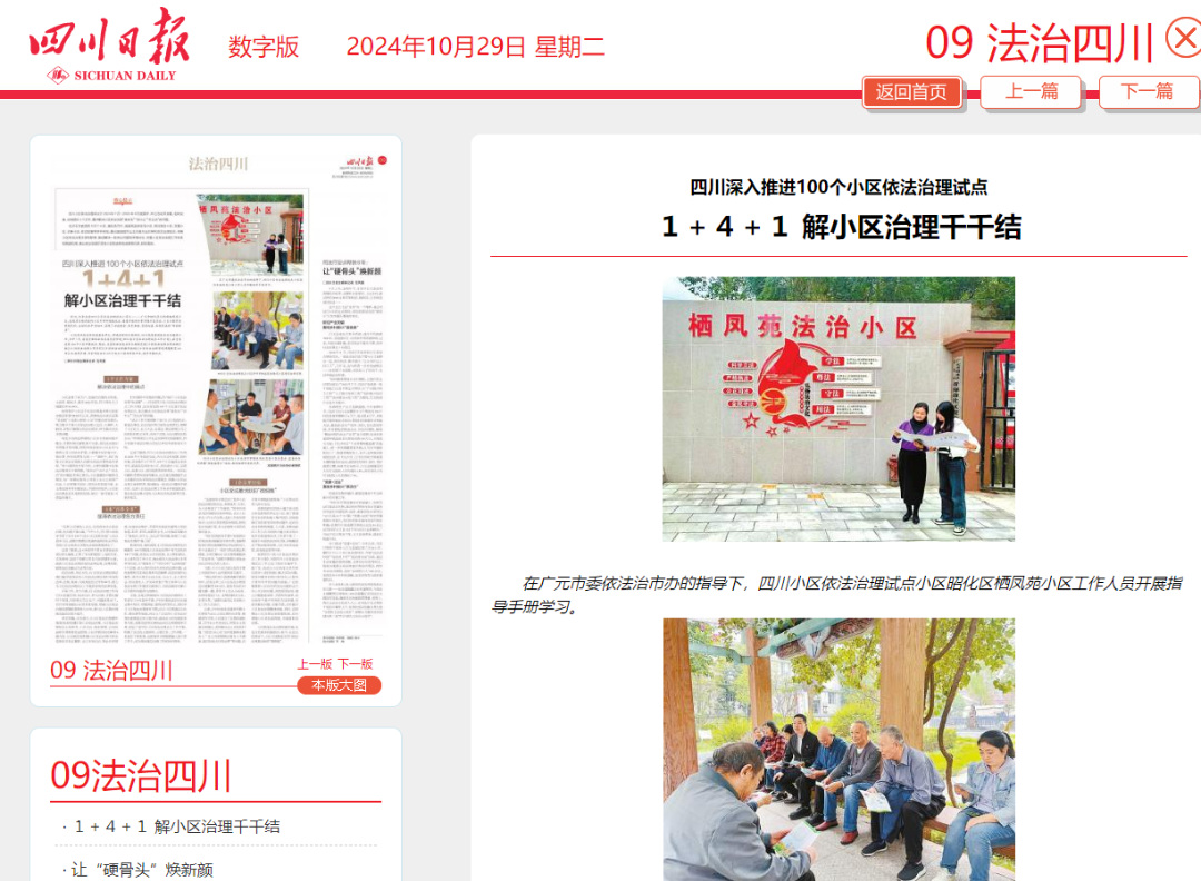 10月29日【四川日报】四川深入推进100个小区依法治理试点 1+4+1 解小区治理千千结