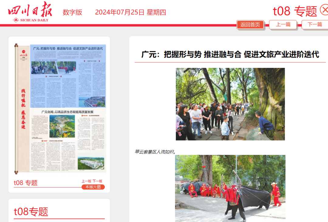 7月25日【四川日报】广元:把握形与势 推进融与合 促进文旅产业进阶迭代