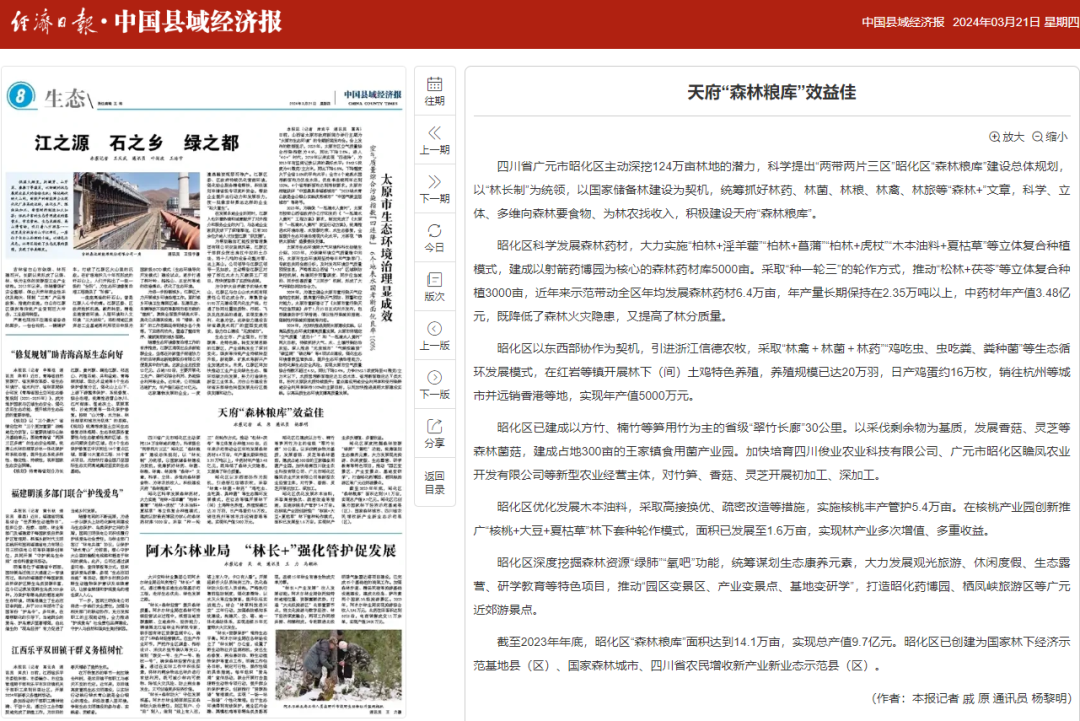 3月21日【中国县域经济报】天府“森林粮库”效益佳