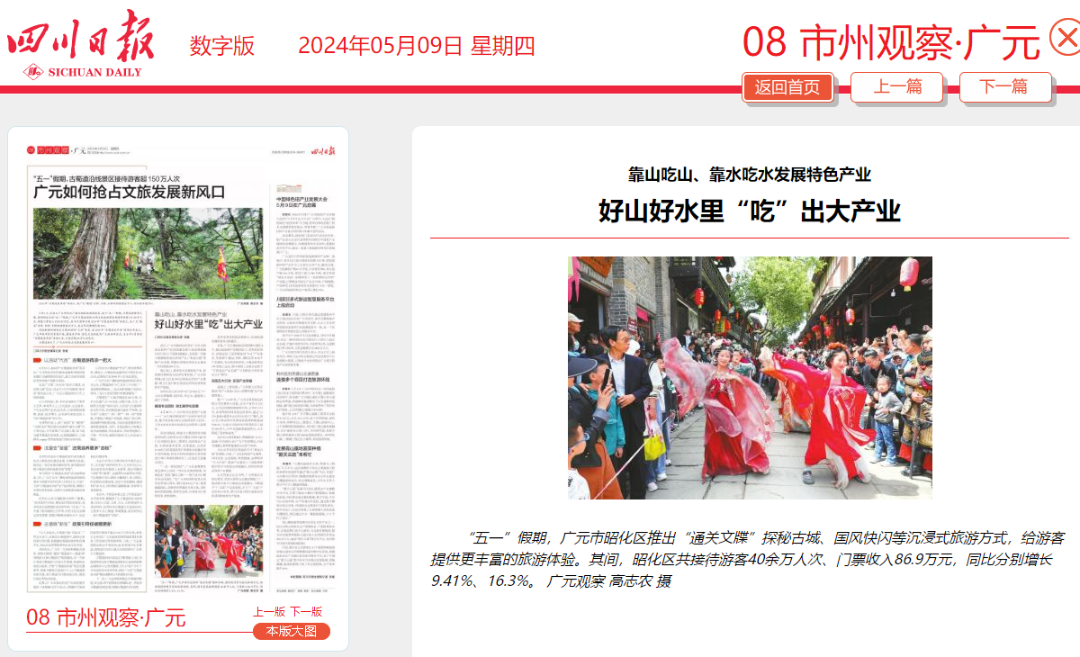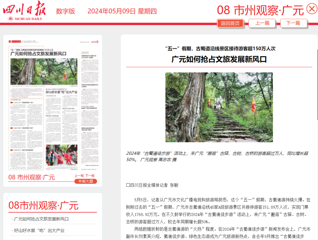 5月9日【四川日报】“五一”假期,古蜀道沿线景区接待游客超150万人次 广元如何抢占文旅发展新风口