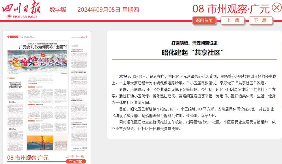 9月5日【四川日报】打通院墙、清理闲置设施 昭化建起“共享社区”