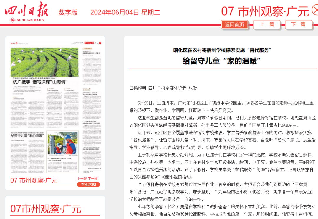 6月4日【四川日报】昭化区在农村寄宿制学校探索实施“替代服务” 给留守儿童“家的温暖”