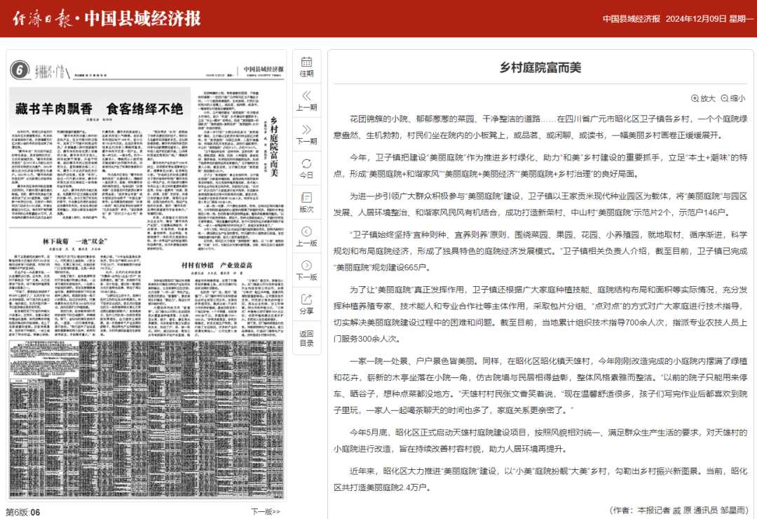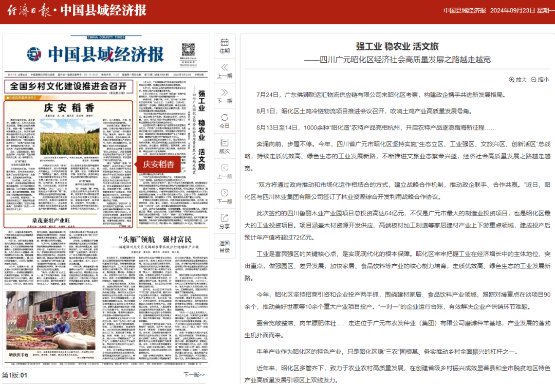 9月23日【中国县域经济报(头版)】强工业 稳农业 活文旅 ——四川广元昭化区经济社会高质量发展之路越走越宽