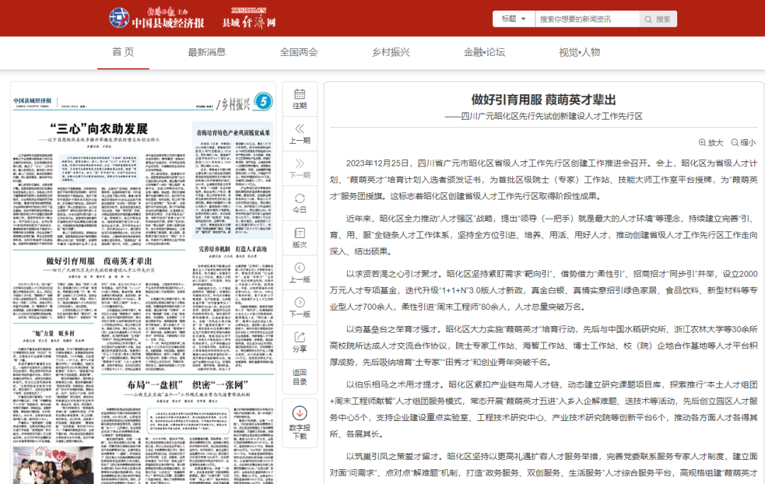 1月1日【中国县域经济报】做好引育用服 葭萌英才辈出 ——四川广元昭化区先行先试创新建设人才工作先行区
