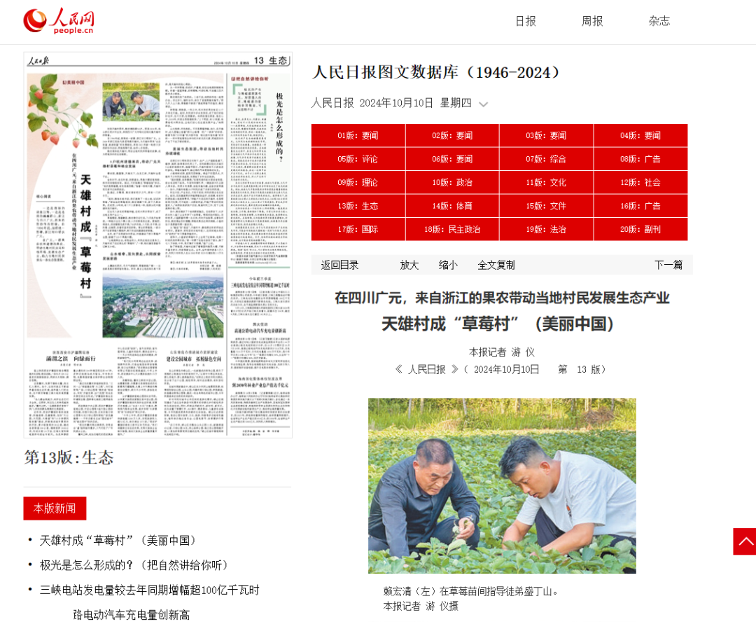 10月10日【人民日报】在四川广元,来自浙江的果农带动当地村民发展生态产业 天雄村成“草莓村”(美丽中国)