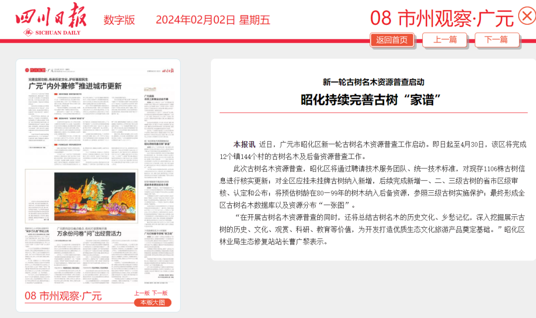 2月2日【四川日报】新一轮古树名木资源普查启动 昭化持续完善古树“家谱”