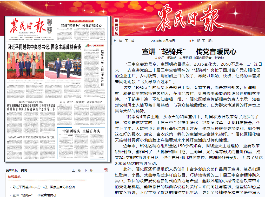 8月20日【农民日报(头版)】宣讲“轻骑兵” 传党音暖民心