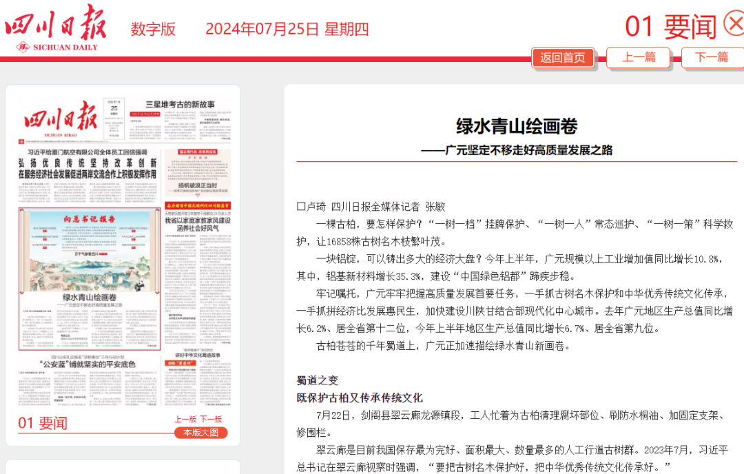7月25日【四川日报(头版)】绿水青山绘画卷 ——广元坚定不移走好高质量发展之路