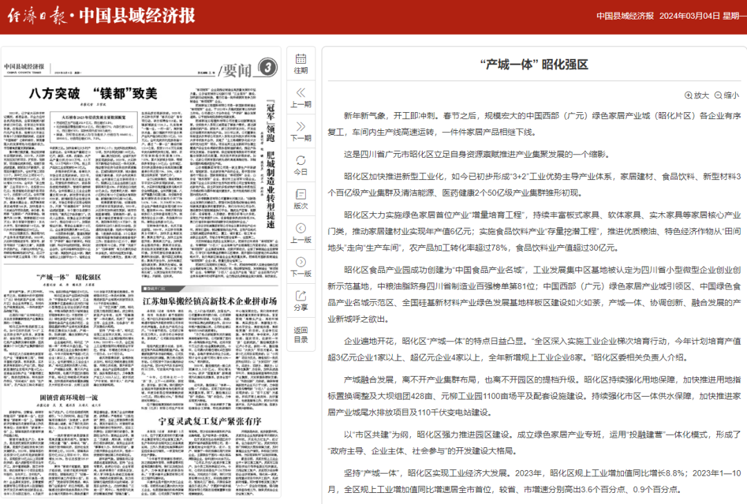 3月4日【中国县域经济报】“产城一体” 昭化强区