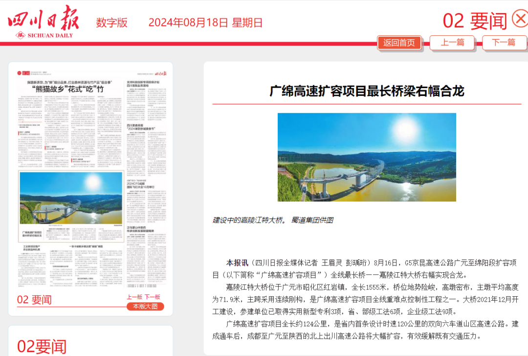 8月18日【四川日报】广绵高速扩容项目最长桥梁右幅合龙