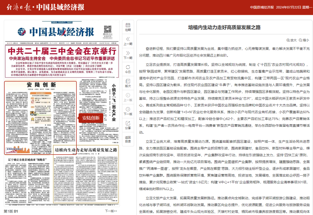 7月22日【中国县域经济报(头版)】培植内生动力走好高质量发展之路