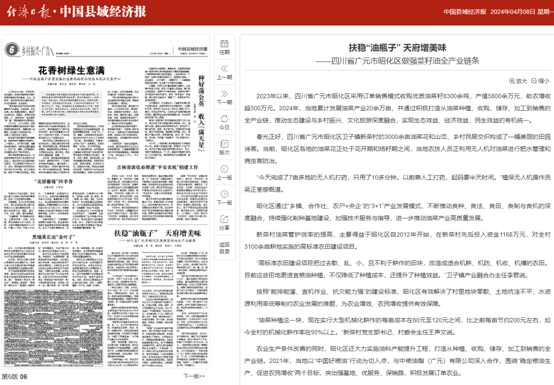4月8日【中国县域经济报】扶稳“油瓶子” 天府增美味 ——四川省广元市昭化区做强菜籽油全产业链条