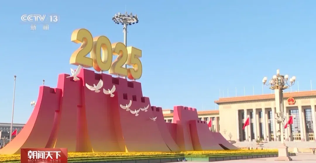 纪念中国人民抗日战争暨世界反法西斯战争胜利80周年大会即将于明天(3日)举行,目前天安门广场核心区布置基本就绪。按照主题鲜明、庄严庄重、简洁安全的原则,活动策划团队在上百个设计方案中反复研讨挑选、细化落实,最终年号台的呈现,让人眼前一亮。