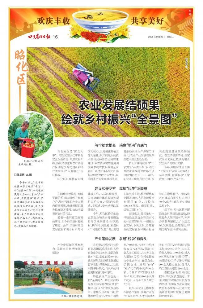 粮食安全是“国之大事”。昭化区坚决扛牢粮食安全政治责任,聚焦农业升级,持续增强重要农产品稳产保供能力,聚力建设新时代更高水平“天府粮仓”山区样板。