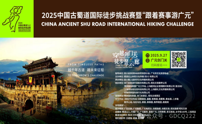 活动内容:2025中国古蜀道国际徒步挑战赛暨“跟着赛事游广元”定于9月27日—28日在四川省广元市剑阁县和昭化区举办,设22公里、20公里、11公里、9公里等组别,开展一场精彩的徒步和文化之旅。