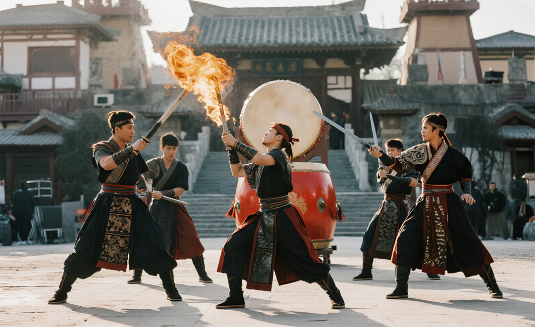 表演形式:鼓舞+火舞+吐火,将氛围推向顶点的狂欢。