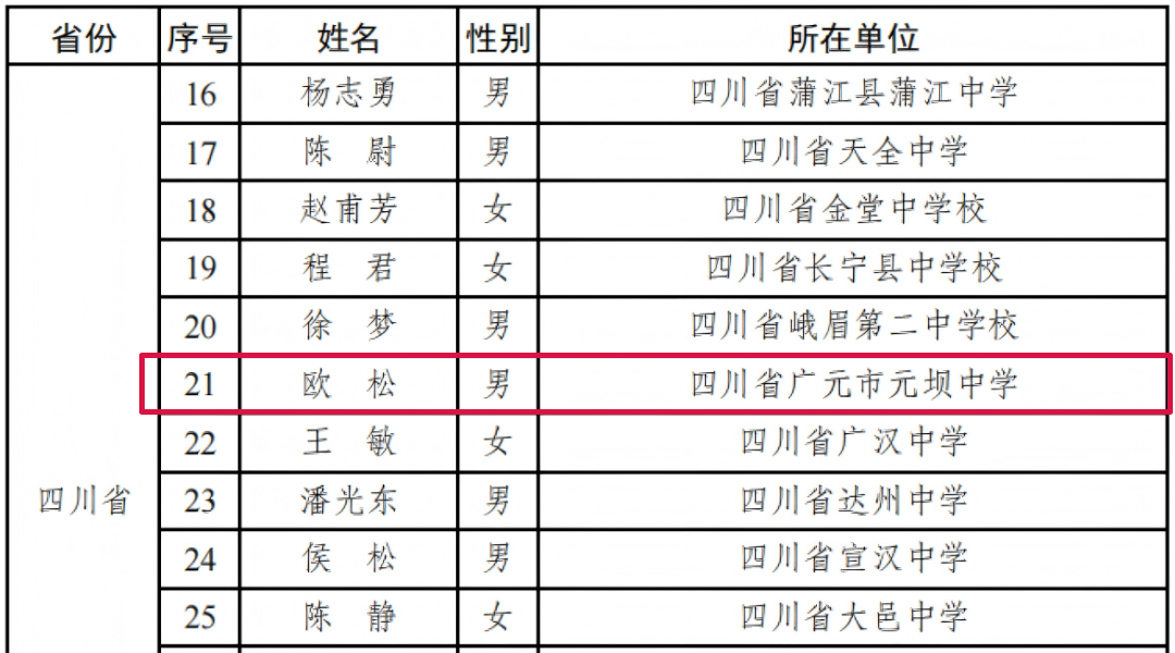 欧松,1979年生,深耕县域教育23载,从一名普通高中数学教师成长为副高级教师、广元市名教师、四川省种子教师,是县域教育的燃灯者、开拓者与先行者。他坚守师德,办公桌上《新时代教师职业行为十项准则》标注详尽,拒收家长万元酬谢金的“教师清誉比黄金更重”成区域师德金句;创建的“师德淬火工程”带动工作室师德零投诉。2016年创建昭化区首个数学名师工作室,以18项制度筑基,开发326个微课资源包,建成区内高中数学习题库,实施“青蓝接翼“计划。9年来,培养市级名师8名、区级学科带头人15名,获“县域教师孵化典范”。他独创“三阶九步”教学模式,所带班级数学平均分连续6年超市平均线25分以上;2024年班级平均分630分、重本上线率100%。打造“头雁论坛”“云上教研共同体”,实施 “精准扶弱工程”,开发系列教学资源,主持市级课题获一等奖,惠及1.2万学生。