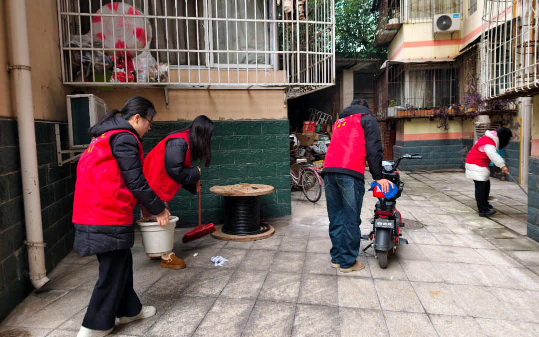 活动中,党员干部、志愿者与社区工作者化身服务先锋,深入小区开展 “清杂理乱” 行动。他们清扫公共区域垃圾、铲除墙面小广告、清运楼道及绿化带杂物,同步规范非机动车停放秩序,引导居民将车辆停至指定位置;同时细致检查消防设施是否完好、消防通道是否畅通,及时排查各类安全隐患,用实实在在的举措优化社区居住环境、筑牢安全防线。