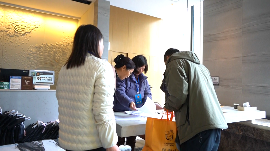 3月17日下午,出席区第八届人民代表大会第六次会议的代表们陆续向大会报到。