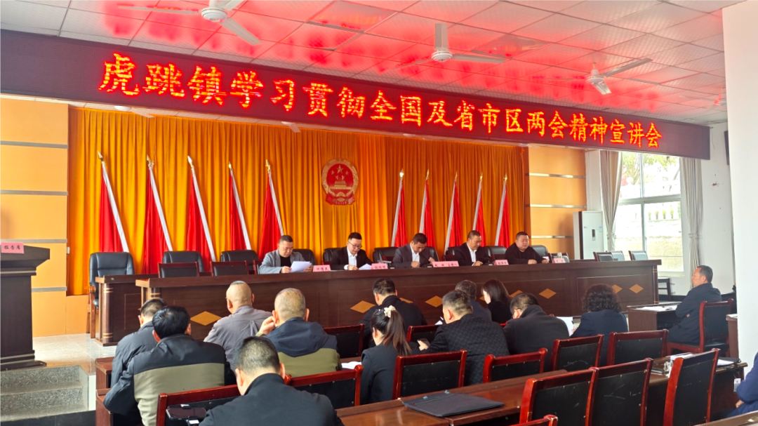 3月25日,虎跳镇召开学习贯彻全国及省市区两会精神宣讲会,并研究部署全镇贯彻落实举措。