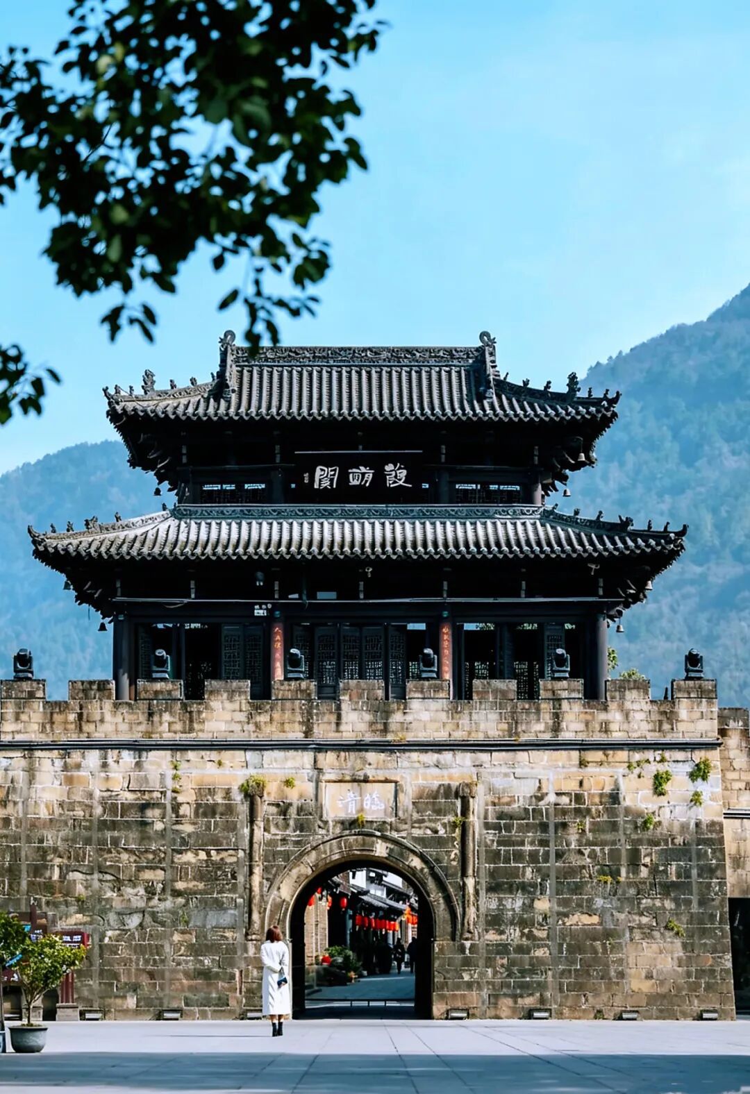 作为古城的东门,也是最具辨识度的地标,『瞻凤门』静立在蜀道之上。明代石拱、飞檐翘角、红灯摇曳,朝有晨光染瓦,夜有灯火映墙。每一帧,都是天生的手机壁纸。