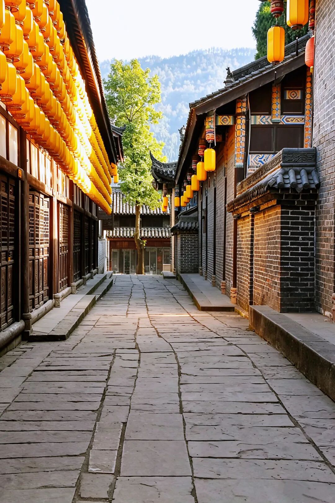 这条巷子不仅是古城的脉络,更是承载着千年文化底蕴的活化石,挂满黄灯笼的墙面,是一张极具故事感的手机壁纸。