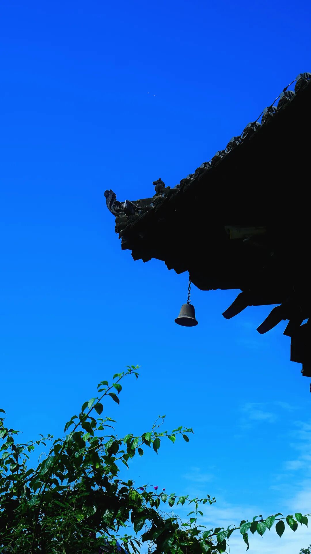 蓝天为底,古檐为画,铜铃为韵,清冷又治愈,古朴又高级,做手机壁纸,极简又有格调。