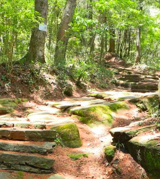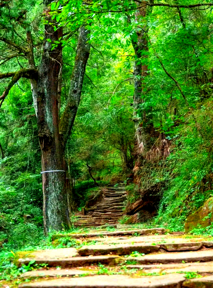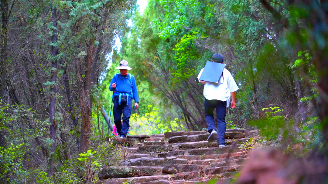 沿着陡峻的古驿道行至山腰