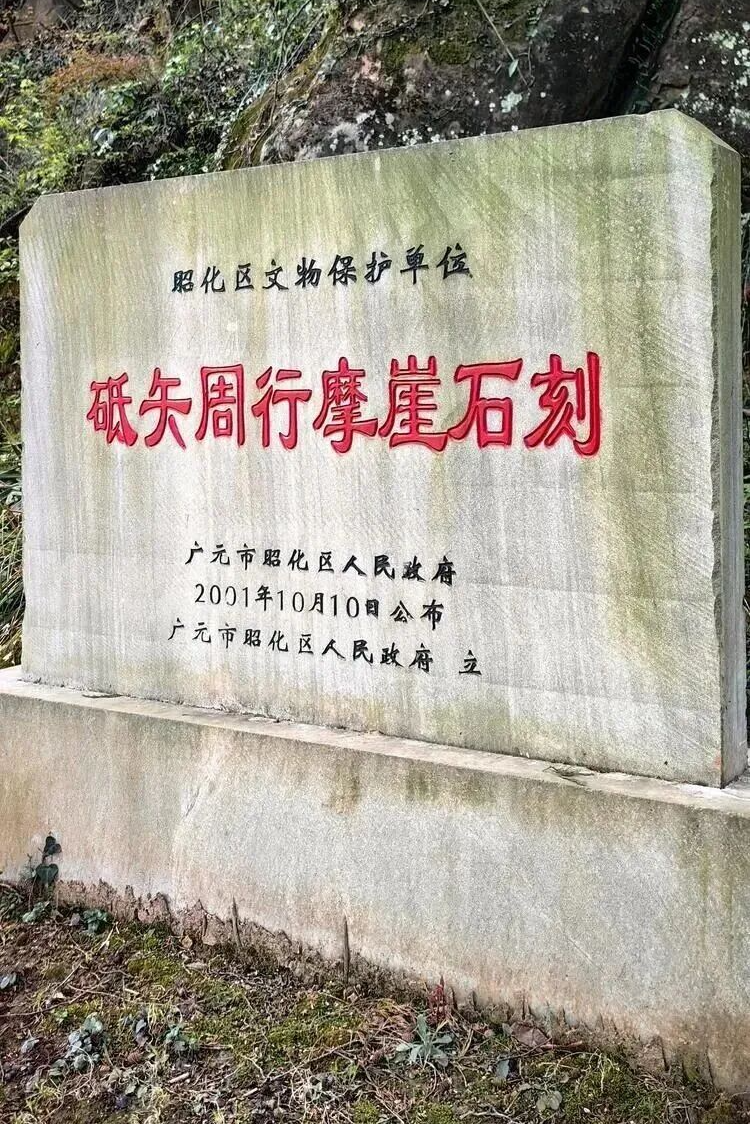 “砥矢周行” 语出《诗经・小雅》“周道如砥,其直如矢”,凿于明天启二年(1622年),为竖行楷体大字,版面宽1.2米、高2.3米,字径0.4米。落款清晰记载:“天启壬戍仲秋,相枧新开,捐俸募工,季冬告成,裁官店一铺,捷二十里,西通蜀省,北达帝都。”这段文字,生动还原了当年拓宽古蜀道、便利交通的壮举,也印证了古蜀道作为南北交通要道的重要地位。