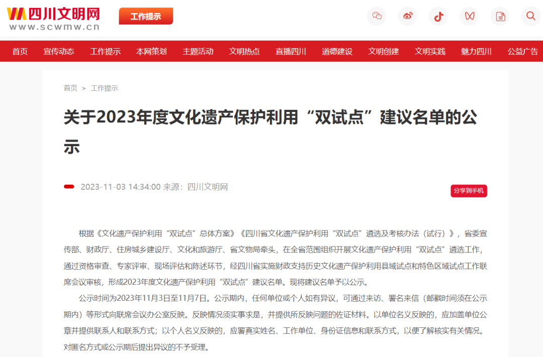昭化区昭化古城连片区域入围2023年度文化遗产保护利用“双试点”名单。