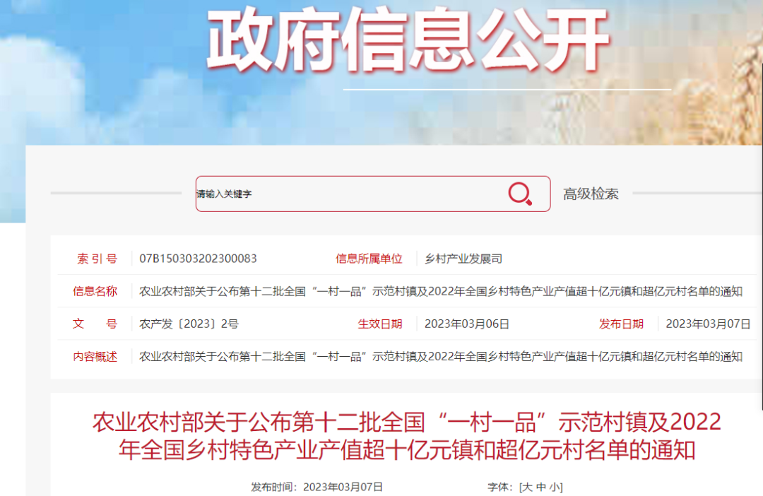 昭化区昭化镇朝阳村被评为第十二批全国“一村一品”示范村。