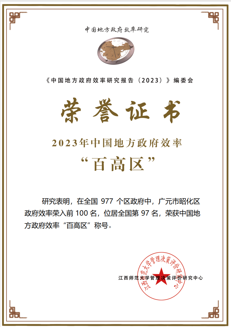 昭化区入选2023年中国地方政府效率“百高区”榜单。