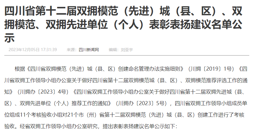 昭化区被评为四川省第十二届双拥模范城(县、区)。