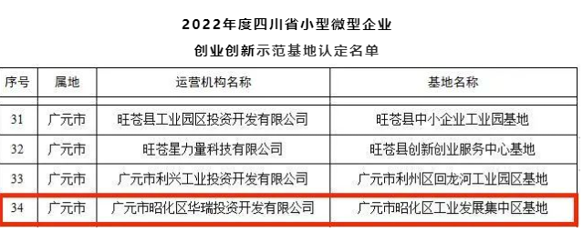 昭化区工业发展集中区基地被认定为四川省小型微型企业创业创新示范基地。