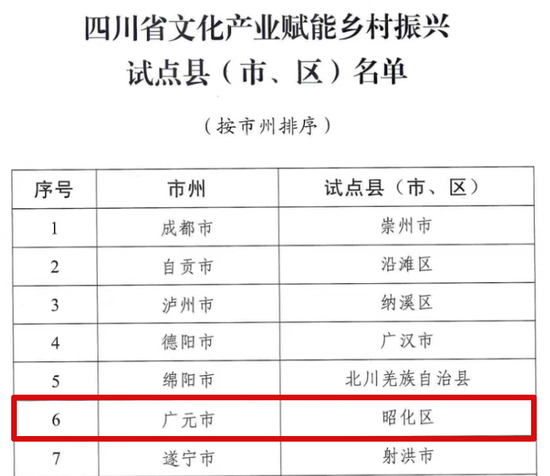 昭化区被评为四川省文化产业赋能乡村振兴试点区。