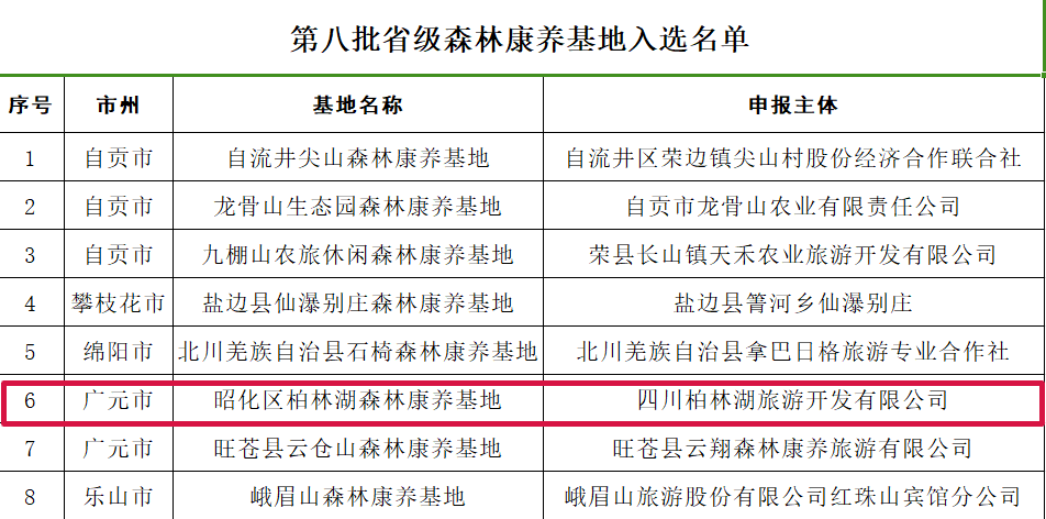 昭化区柏林湖森林康养基地被评为为省级森林康养基地。