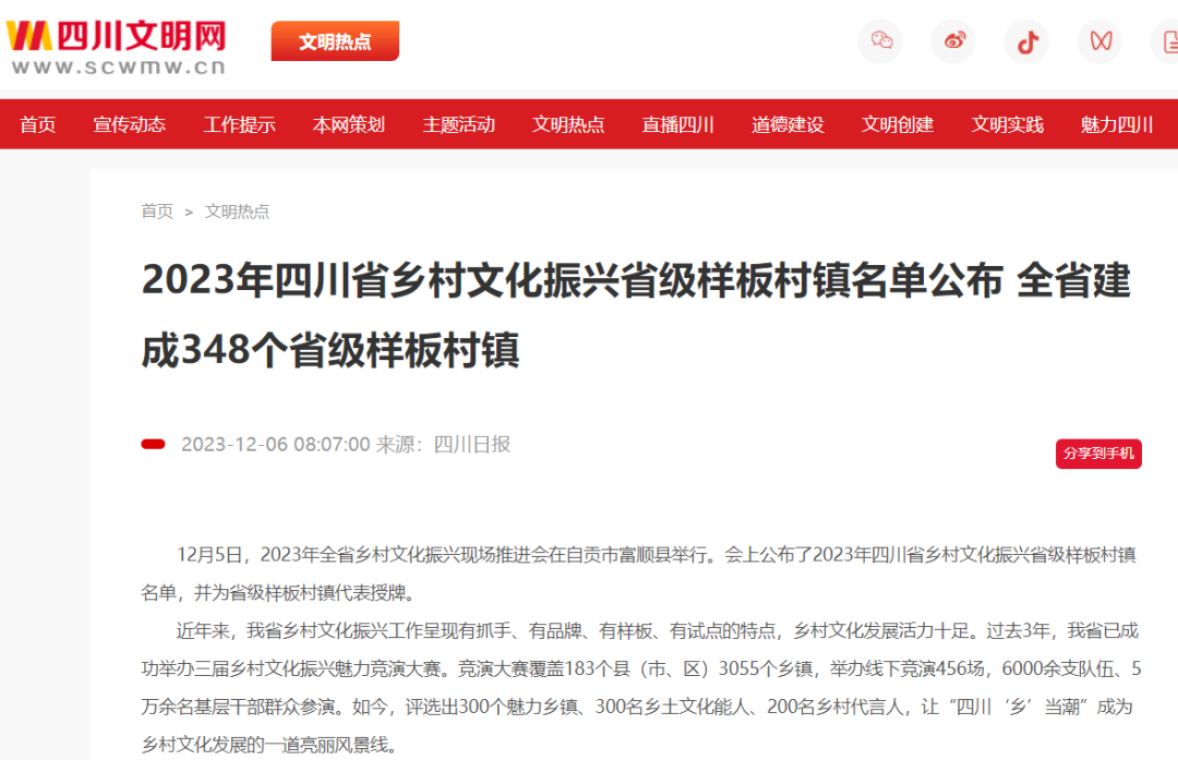 昭化区柏林沟镇被命名为2023年乡村文化振兴省级样板村镇。
