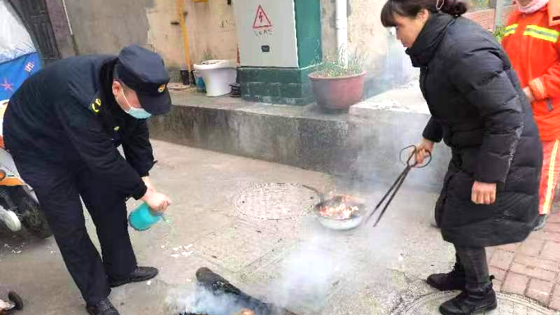 不文明行为:市民违规占道烧火取暖