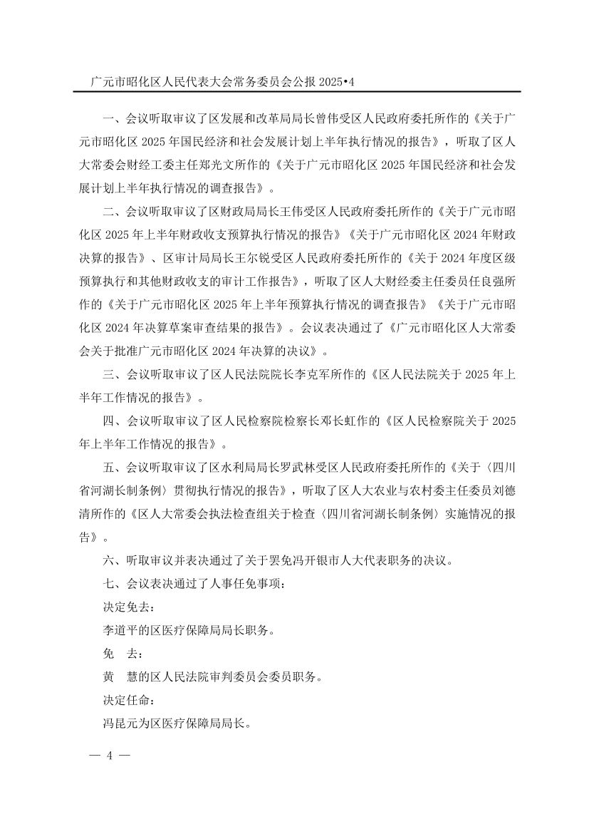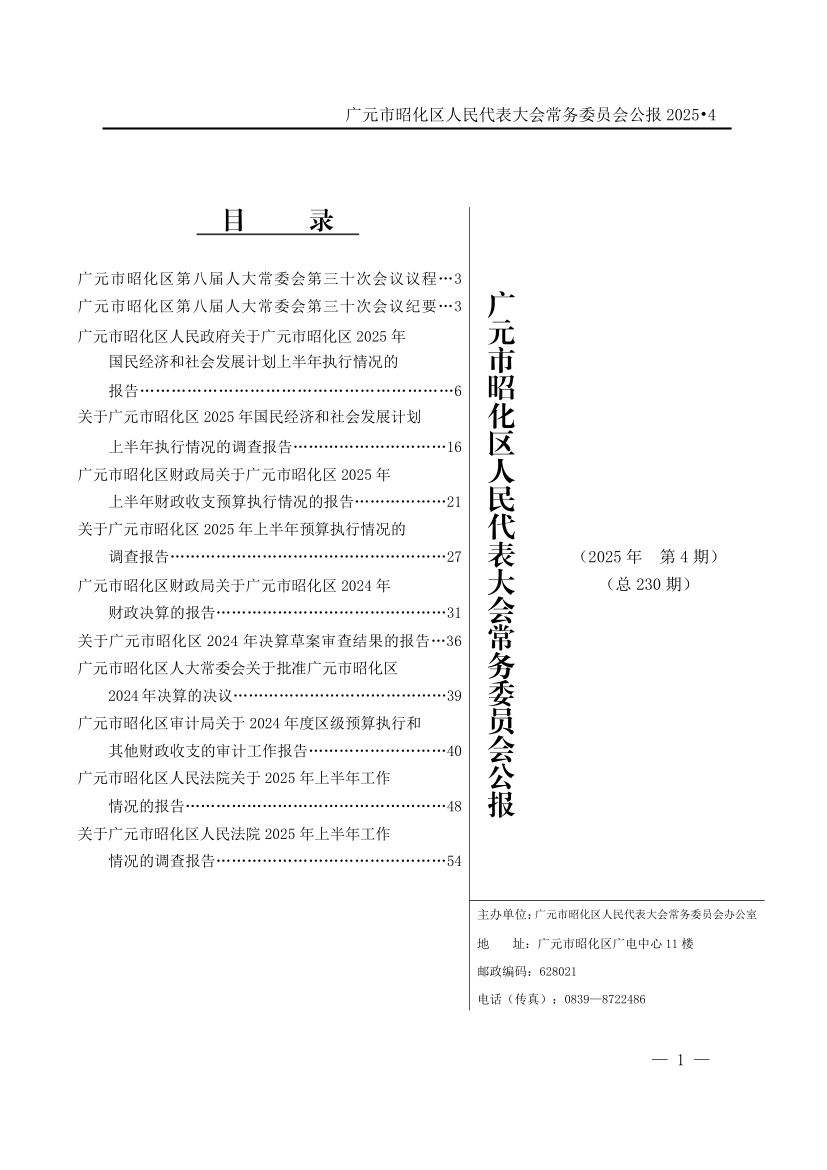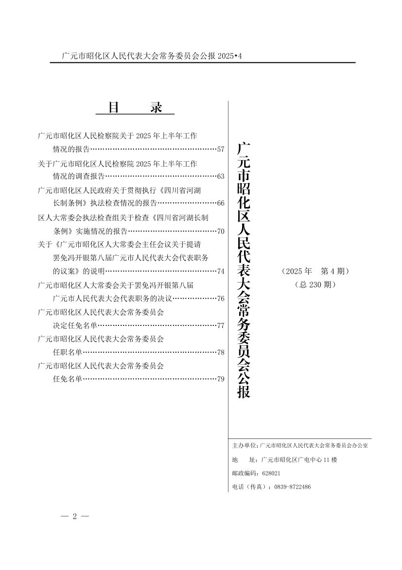 广元市昭化区人民代表大会常务委员会公报(2025年第4期)