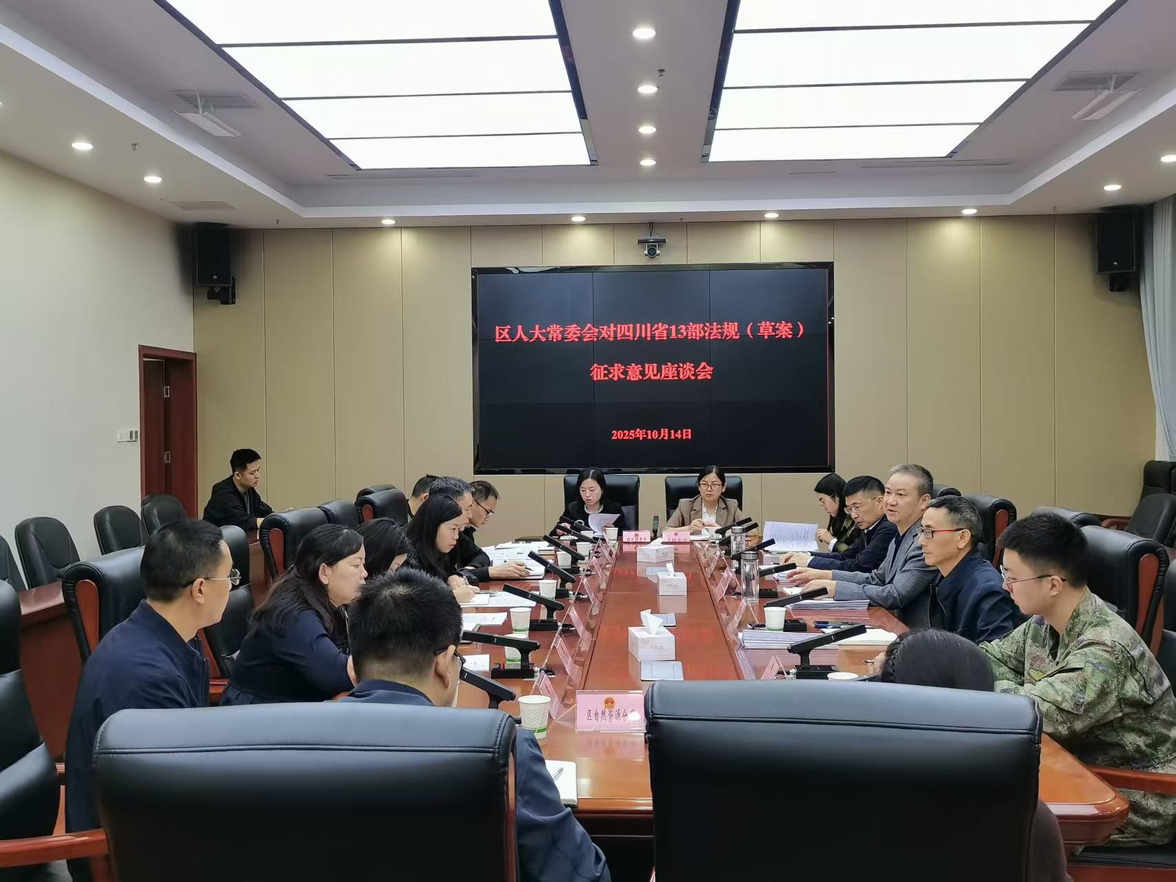 10月14日,区人大常委会副主任王正功主持召开区人大常委会对四川省人大常委会13部法规(草案)征求意见座谈会。