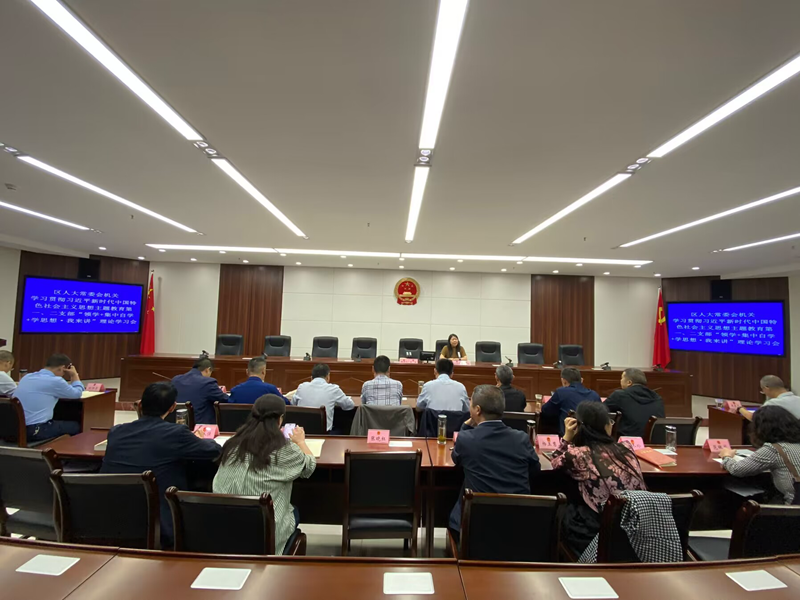 9月28日,在区广电中心四楼人大常委会会议室,机关第一、二支部组织全体党员、干部开展学习习近平新时代中国特色社会主义思想主题教育集中学习活动,学习采取“领学+集中自学+学思想·我来讲”相结合的方式,由各支部选派党员代表进行轮流领学和交流发言。机关第二支部书记廖冬玲主持学习会。