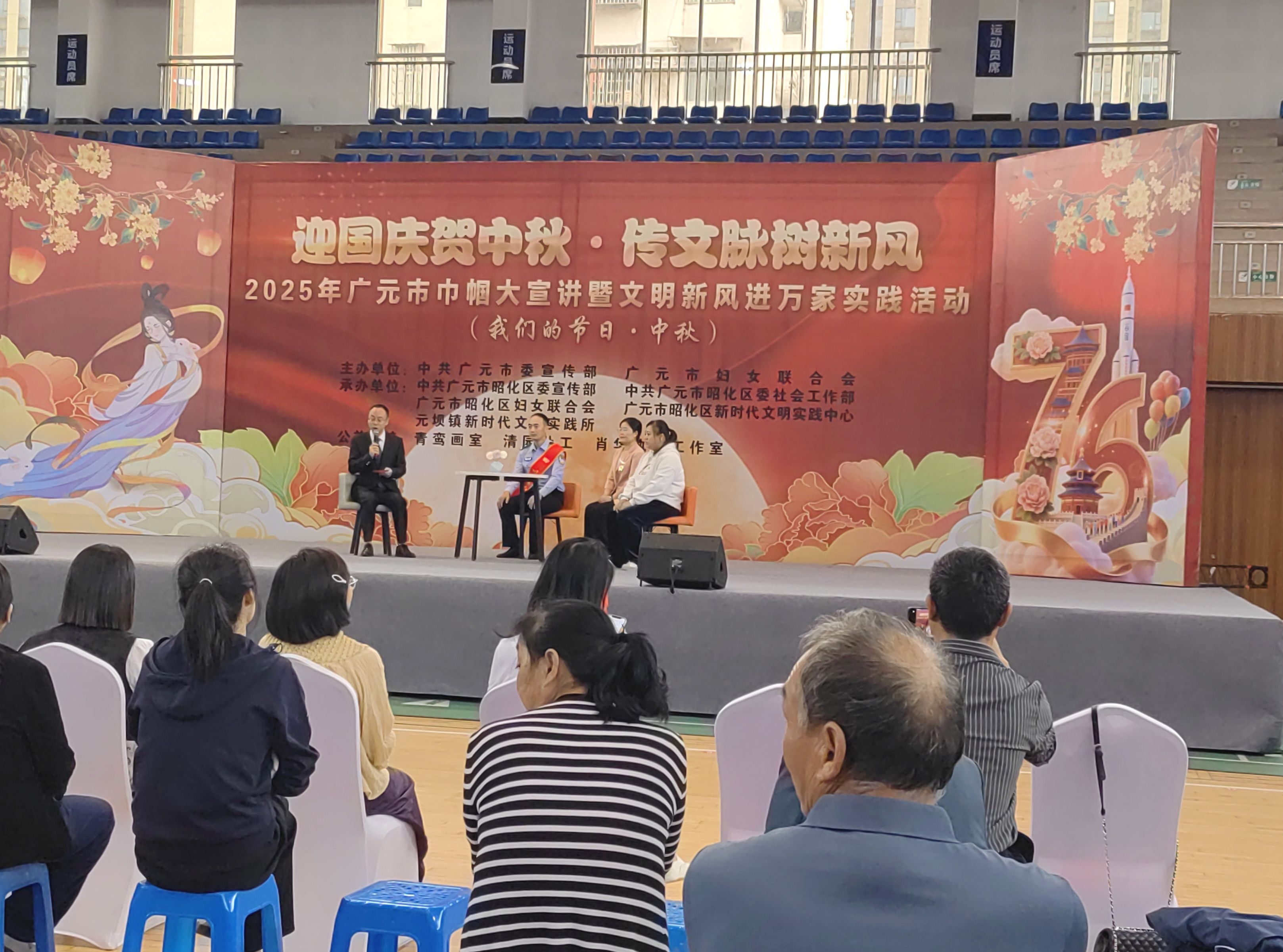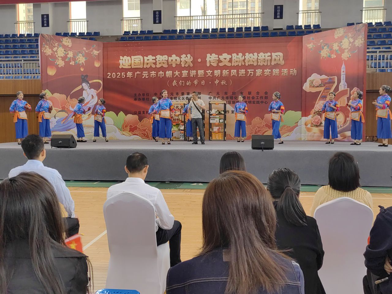 9月29日,由元坝镇新时代文明实践所配合承办的“迎国庆贺中秋・传文脉树新风”2025年广元市巾帼大宣讲暨文明新风进万家实践活动,在澳援体育馆举行。活动以文艺表演为载体、志愿服务为依托,弘扬文明新风、推进移风易俗,为群众送上文明气息浓厚的节日盛会。