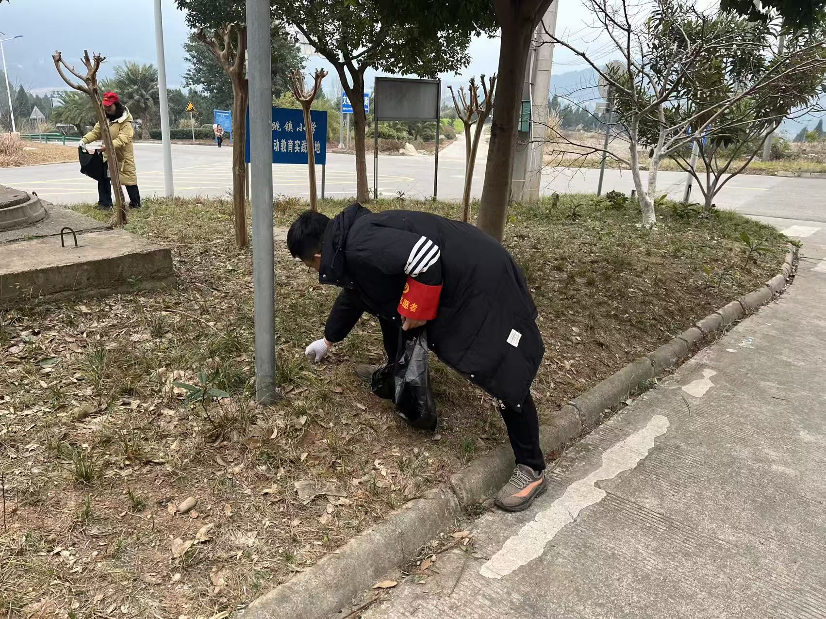 活动现场,“志愿红”与“环卫橙”交相辉映,勾勒出街头最动人的风景线。队员们手持垃圾钳、垃圾桶、防护手套等工具,严格落实分工协作、分片包干机制,对集镇主干道、背街小巷、绿化带及城乡结合部等关键区域,开展全方位“地毯式”清理。志愿者与环卫工人默契联动,弯腰捡拾路面烟头、纸屑、白色垃圾,徒手清理绿化带内隐匿的杂物,集中攻坚卫生死角的陈年垃圾,用脚步丈量责任边界,用双手擦亮家园底色,每一个忙碌的身影都传递着守护环境的赤诚之心。