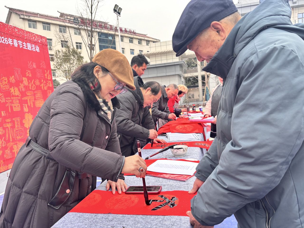 活动现场热闹非凡,每一张书写桌前都排起了长队。“请给我写一副阖家欢乐的春联!”“想要带‘马’字的,祝新的一年马到成功!”随着群众的热切期盼,书法老师们凝神聚力、提笔挥毫,五位书法老师楷行篆隶各展所长,一笔一画将马年吉祥、阖家幸福的美好寓意凝于笔端,一幅幅春联、一个个福字新鲜出炉,引得群众纷纷排队等候,争相领取心仪墨宝,欢笑声此起彼伏。刚领到春联的小杨小心翼翼地捧着墨迹未干的春联和“福”字,开心地说:“手写的春联就是有温度,能根据自己喜欢的风格来‘定制’,打破了对传统意义上春联书写的固有认知,比买的印刷春联更有年味!”