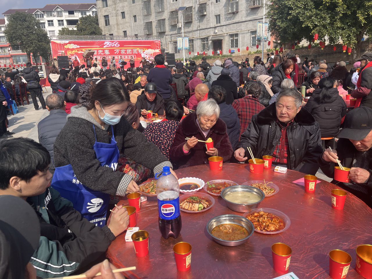 中午,热闹的坝坝宴如期开席,邻里乡亲围坐一桌、促膝谈心,共享团圆盛宴、共话美好生活,席间欢声笑语、暖意融融,尽显邻里和睦之情。宴席期间,迎新春文体活动同步精彩上演,嘹亮的歌声传递着新春的喜悦与对生活的热爱,优美的舞姿展现着群众昂扬向上的精神风采,独具乡土气息的走秀节目更是创意十足、亮点纷呈,将活动氛围一次次推向高潮,现场掌声、欢呼声、笑声不绝于耳,暖意与年味交织相融。