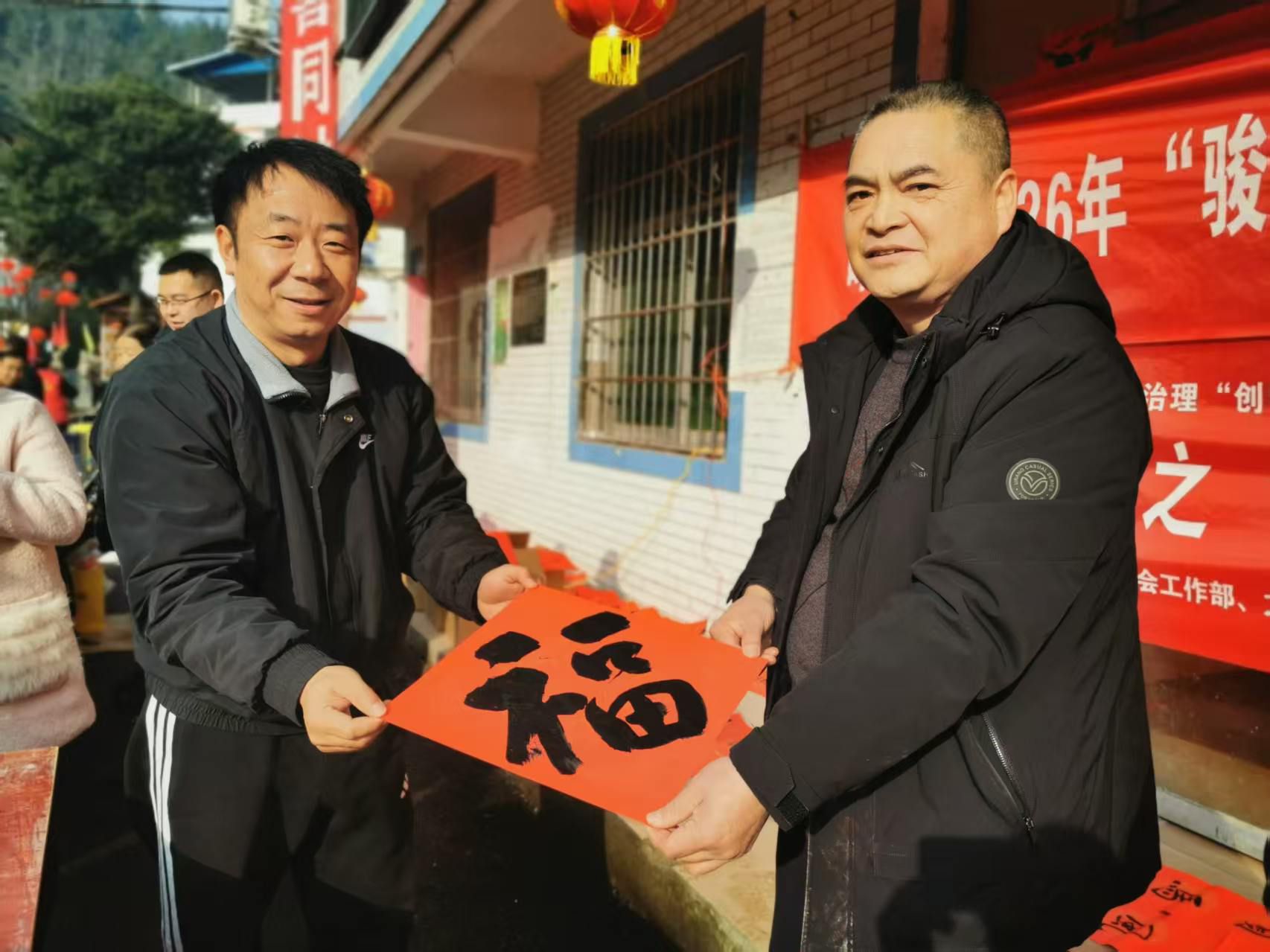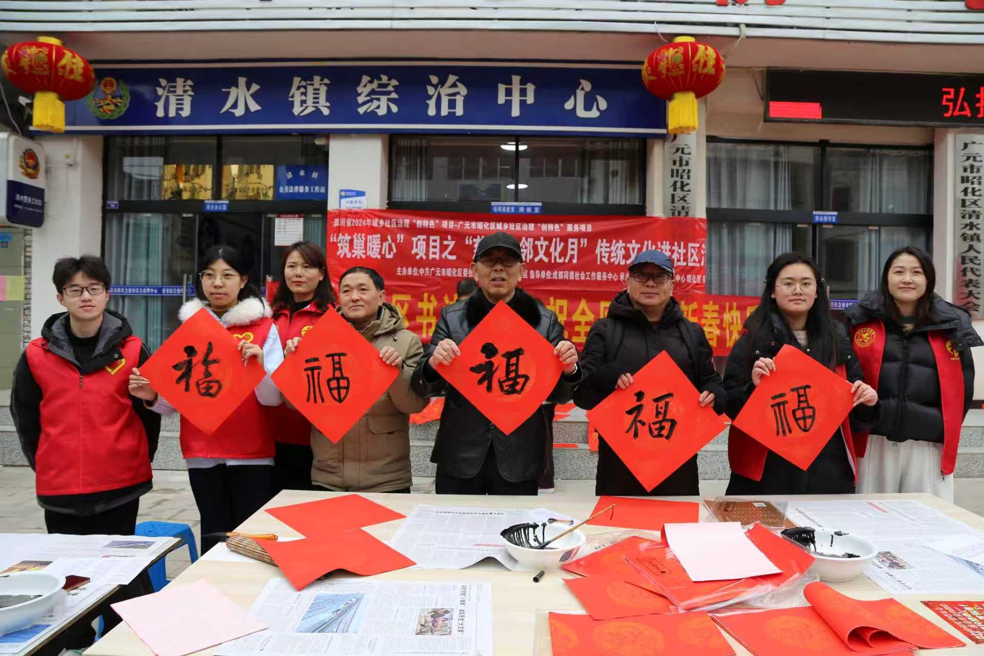 为弘扬中华优秀传统文化,营造喜庆祥和的新春氛围,近日,广元市昭化区组织开展2026年“骏马迎春・文化惠民” 文明实践+送福字送对联下乡活动,活动覆盖清水镇等11个村镇,将新春祝福送到群众家门口。