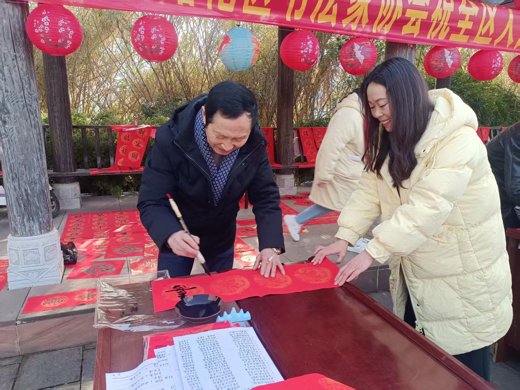 此次活动由区委宣传部、区新时代文明实践中心、区文联、区书法家协会等单位联合举办。活动现场,书法爱好者们挥毫泼墨、笔走龙蛇,在红彤彤的宣纸上联袂书写春联与 “福”字。一句句寓意吉祥的联语,一个个饱含祝福的“福” 字,承载着对新年的美好期许。