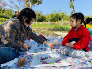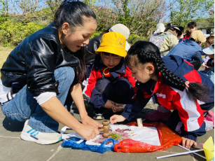 植物拓印环节最受欢迎,孩子们用小锤子将花草纹路印在帆布袋上,在动手间留住春日美好。