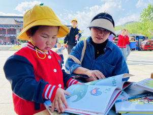 亲子共读绘本是活动核心环节,暖意十足。在工作人员引导下,孩子们围坐书桌,迫不及待翻阅绘本,有的认真看图画,有的拉着家长小声朗读。有个小女孩翻着绘本,转头对妈妈说:“书上的娃娃帮妈妈拖地,我以后也帮你擦桌子,你开小饭馆肯定忙不过来~”稚嫩话语暖了全场人心。